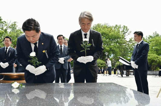 [뉴스맘]김이강 서구청장은 6일 오전 광주공원 현충탑 앞에서 거행된 제68회 현충일 추념식에 참석해 순국선열과 호국영령에 헌화하고 위패봉안소에 안치된 위패를 닦으며 숭고한 희생정신을 기렸다.