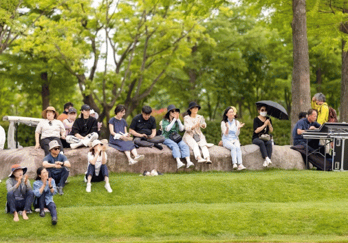 노을정원에 놓인 금빛 하프는 순천만국제정원박람회를 찾은 관람객들의 시선을 사로잡기에 충분했다. 실내 공연장에서 볼 법한 클래식 공연이 탁 트인 정원을 배경으로 펼쳐지니, 푸른 잔디는 자연스레 관람석이 되는 진풍경이 벌어졌다. 하프와 클라리넷 선율이 울려 퍼지자 노을정원은 있는 그대로의 문화 공연장이 됐다.