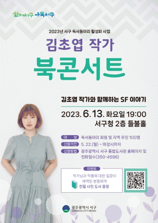 이번 북 콘서트는 서구 독서동아리 활성화 지원사업의 일환으로 마련됐다. 허희 문학평론가가 사회를 맡아 김 작가와 SF문학, 작품에 대해 이야기를 나눌 예정이다. 또 현장에서 독자들이 참여하는 질의응답을 통해 소통하는 시간도 갖는다.