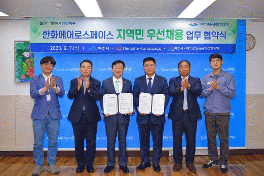 이번 협약에 따라 한화에어로스페이스는 지역민 우선 채용을 위해 합리적 제도를 마련하고, 여수시에 거주하는 임.직원들에게 다각적인 인센티브를 제공토록 노력한다.