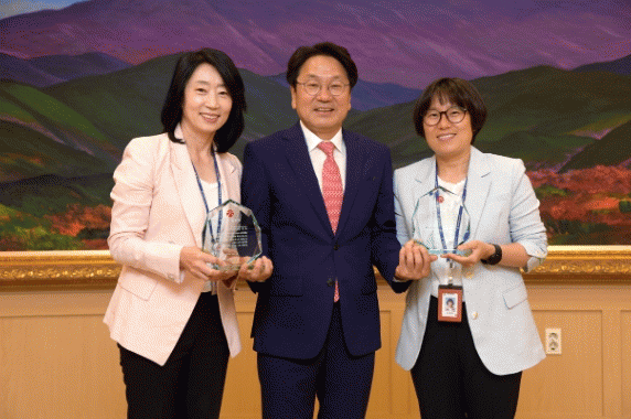 강은숙 팀장과 김경명 주무관은 시민 누구나 돌봄이 필요할 때 편리하게 이용할 수 있는 1대 1 맞춤 돌봄 체계를 구축, 시민의 복지만족도와 삶의 질 향상에 기여한 공로를 인정받았다.