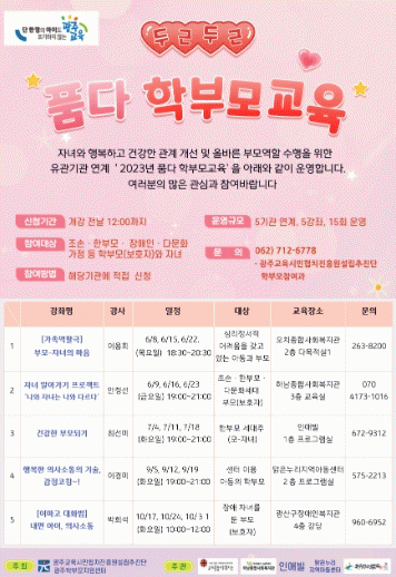 한편 학부모교육 신청은 해당 기관에 직접 신청하여 참여할 수 있다.