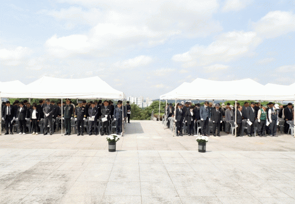 현충일 추념행사는 정각 10시에 전국적으로 울리는 사이렌 취명에 맞춰 1분간 묵념을 시작으로 육군 3대대의 조총 발사 및 헌화와 분향, 추념사, 현충일 노래 제창 순으로 진행됐다.