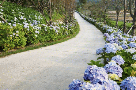 섬 특색과 계절이 연상되고 맞춤형 테마에 어울리는 도초도는 지역마다 초목이 무성하여 붙여진 이름만큼 6월마다 수국정원에서 ‘배로 가는 섬 수국 축제’가 열린다.