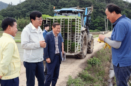 이날 김 군수는 모내기가 한창인 용산면 모산리를 시작으로 관산읍 영농현장을 차례로 방문했다.
