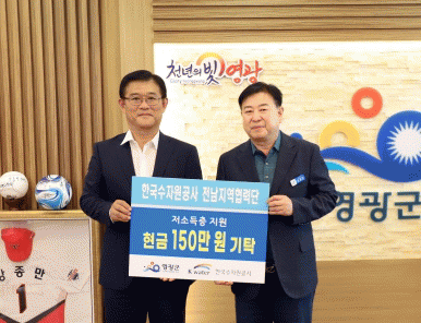 한국수자원공사 전남지역협력단은 영광군 지방상수도 현대화사업을 추진하는 등 영광군 지방상수도 이용증진과 깨끗한 수돗물 공급하기 위해 노력하고 있으며, 매년 기탁 . 기부 등을 통해 사회공헌활동을 실천해 오고 있다.