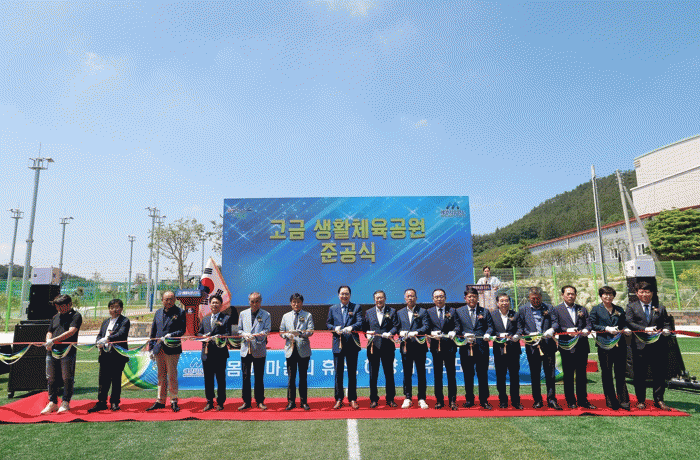 고금면 생활체육공원 조성 사업은 총 40억 원이 투입됐으며, 지난해 5월 공사를 시작해 20,052㎡ 면적에 친환경 축구장, 농구장, 족구장, 어린이 놀이시설, 산책로 등을 갖췄다.