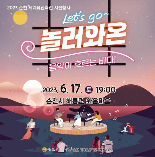 음악회는 오는 17일 오후 7시에 와온해변 부둣가에서 열리며, 참가자는 14일까지 순천시청 카드뉴스 속 QR코드로 선착순 80명을 모집한다.