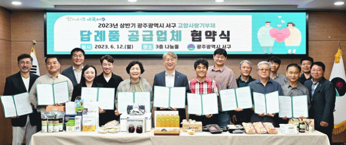 김이강 서구청장은 “고향사랑기부제는 기부금을 통해 지역발전의 소중한 동력을 마련하는 한편, 기부자들이 만족하는 답례품 발굴을 통해 지역경제 활성화를 꾀할 수 있다는 점에서 의미가 크다”며 “오늘 협약을 맺은 공급업체 대표님들은 지역을 대표하는 상품을 생산한다는 자부심을 갖고 최상의 품질을 유지하는데 최선을 다해달라”고 말했다.