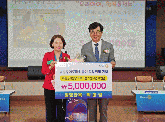 이취임식 자리에서 전달한 이번 기부금은 심리 정서적 불안을 갖고 있는 저소득 아동을 위한 아동 심리상담 ‘우리아이 행복충전소’ 두 번째 이야기 프로그램을 운영하는 데 사용될 예정이다.