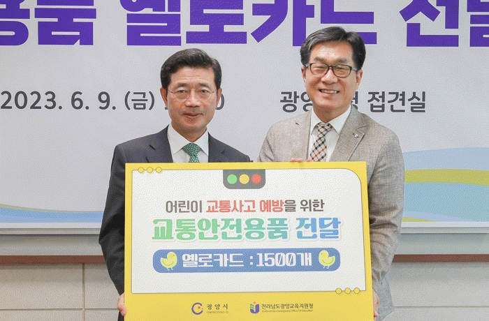 정인화 광양시장은 “이번 옐로카드 전달을 통해 어린이 교통사고 예방에 많은 도움을 줄 것으로 기대된다”며 “앞으로도 미래세대의 주역인 어린이들이 안전한 환경에서 성장할 수 있도록 다양한 교통안전 프로그램을 발굴해 지속적으로 시행해 나가겠다”고 밝혔다.