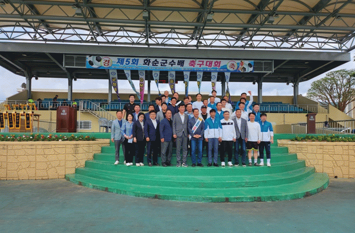 화순군체육회가 주최하고, 화순군축구협회가 주관한 제5회 화순군수 배 축구대회는 신정훈 국회의원, 하성동 의장을 비롯한 관계자들이 참석해 선수들을 격려했고, 9개 축구클럽 선수단은 무더운 날씨 속에서도 열띤 경쟁과 응원전을 펼쳤다.