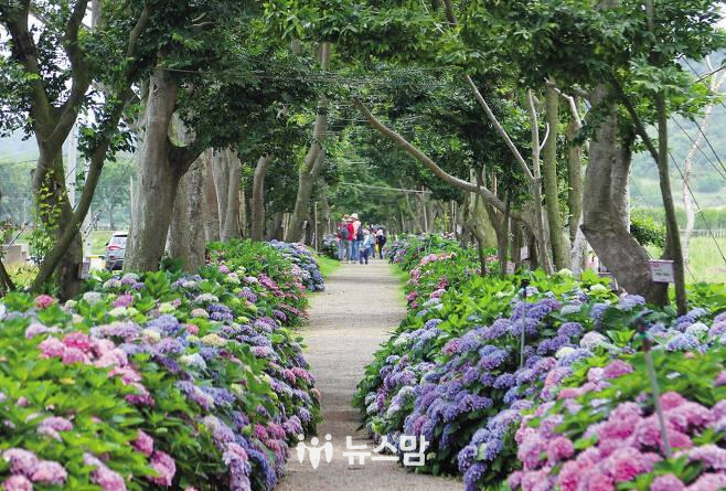 도초도 ‘환상의 정원’, ‘수국 공원’을 비롯해 섬 곳곳에는 3만주의 수국이 수십만 송이 꽃을 피우고, 절정기를 맞는 오는 16~25일 도초도 수국축제가 열린다.