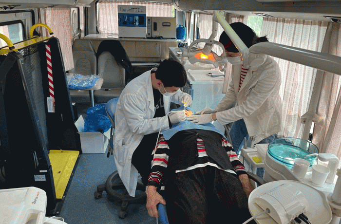 치과 진료 장비를 갖춘 차량이 마을을 방문, 정기적인 치과 검진을 받기 어려운 주민들의 구강건강을 위해 치과의사와 치과위생사 등 전문인력이 이동진료를 실시하고 있다.