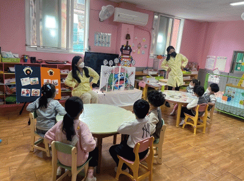 우선 당일 점심메뉴 식재료를 주제로 성장기 아동의 건강에 미치는 영향 등 대해 설명해 편식예방을 유도하고 올바른 식사 예절을 그림 상황판을 통해 쉽게 익히고 실천할 수 있도록 한다.