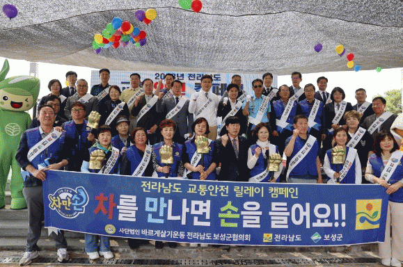 이날 캠페인에는 전라남도와 전라남도의회, 보성군, 전남경찰청, 전라남도교육청, 교통안전공단, 전남교통연수원, 전라남도새마을회, 바르게살기전남협의회, 녹색어머니회 등 13개 기관·단체 200여 명이 함꼐했다.