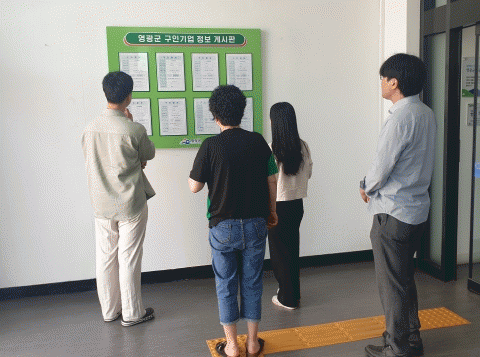 영광군홈페이지 구인/구직게시판을 통해서도 정보를 확인할 수 있지만 고용복지센터 및 국세청 영광세무서가 상주하고 있어 민원인의 왕래가 많은 장소에 관내 구인 기업체를 게시하여 한 눈에 파악할 수 있도록 했다.