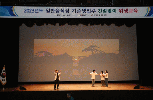 특히 이번 교육에서는 음식점 위생?불친절로 신고되었던 각종 민원 사례를 전문극단 미암이 상황극으로 재현해 참석자들의 호응을 받았다. 참석자들은 실제 사례 재현을 통해 친절하고 깨끗한 손님맞이 자세를 되돌아보고, 인식을 새롭게 하는 계기를 마련했다.