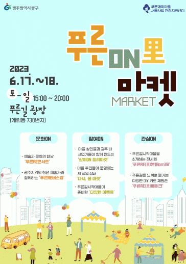 이번 행사는 푸른길시작마을 새뜰사업 일환으로 첫 시작을 의미하는 ‘ON(온)마켓’과 마을의 이야기를 담은 ‘푸른길시작마을 里(리)’로 구성된 2가지 테마로 운영된다.