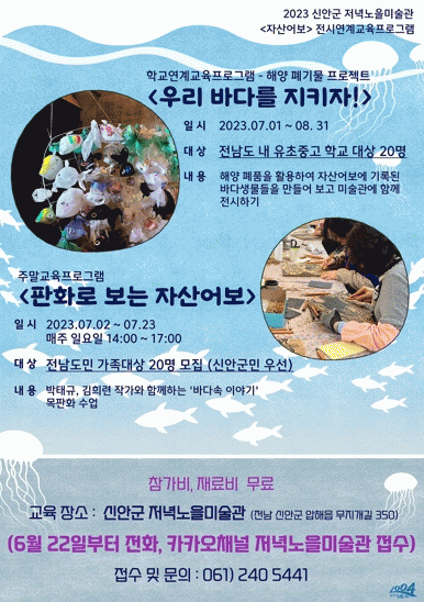 프로그램 신청은 오는 6월 22일부터 전화 또는 신안군 저녁노을미술관 카카오 채널을 통해 할 수 있다.