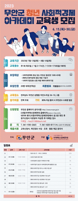 김산 군수는 “사회적경제기업에 관심 있는 관내 청년들이 많이 참여하여, 지속 가능한 사회적경제기업 육성과 신규 사회적경제 기업 발굴에 이바지할 수 있기를 바란다”고 말했다.