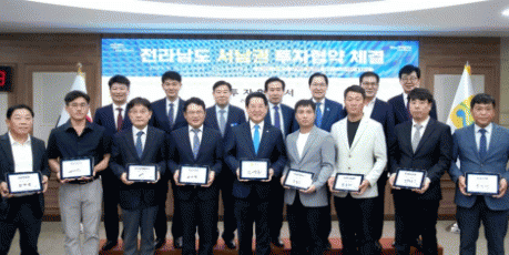 이날 협약식에는 김영록 전라남도지사와 양오열 동진기업(주) 대표 등 8개 기업대표, 박홍률 목포시장, 김성 장흥군수, 김성훈 무안부군수, 이상익 함평군수, 강종만 영광군수, 신우철 완도군수 등이 함께했다.