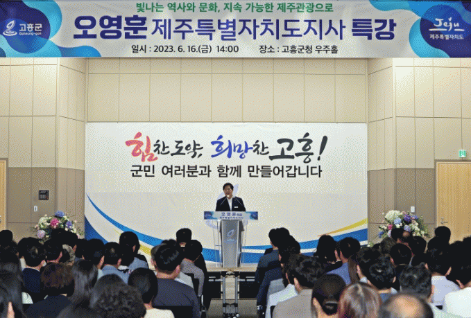 오영훈 지사는 특강에서 ‘사람과 자연이 행복한 제주의 현재와 미래산업 선도도시로 도약하기 위한 제주의 노력’을 고흥군 공직자와 제주 향우 등과 공유했다.