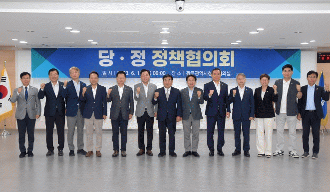 정책협의회에서는 5·18정신 헌법전문 수록을 위한 개헌 추진, 달빛고속철도 예비타당성조사 면제 특별법 제정, 광주시 22개 국비지원사업 건의, 아동(어린이) 청소년 대중교통비 지원 추진 등 네가지 주요 안건에 대한 논의가 진행됐다.