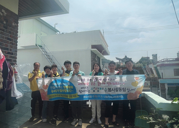 한편 ‘섬섬여수 봉사팀’은 여수시청 나눔봉사단 5개 팀 중 하나로, 11명의 회원들로 구성돼 주거취약가구를 위한 청소, 전등교체 등 생활불편개선 봉사활동을 월 1회 이상 실천해오고 있다.