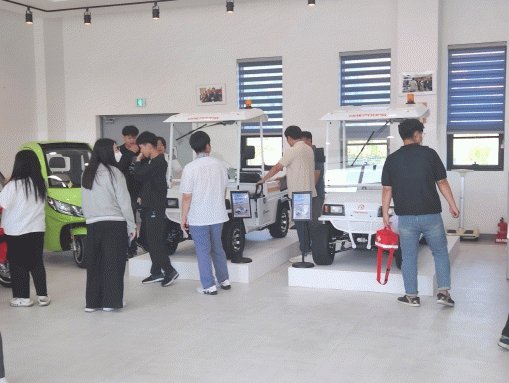연구센터 방문 후 관내 농업용 전동운반차, 전기이륜차 생산 업체인 대풍이브이자동차와 에이치비를 방문하여 주력 제품 전시장 및 생산공장에서 직접 생산하는 모습을 견학했다.