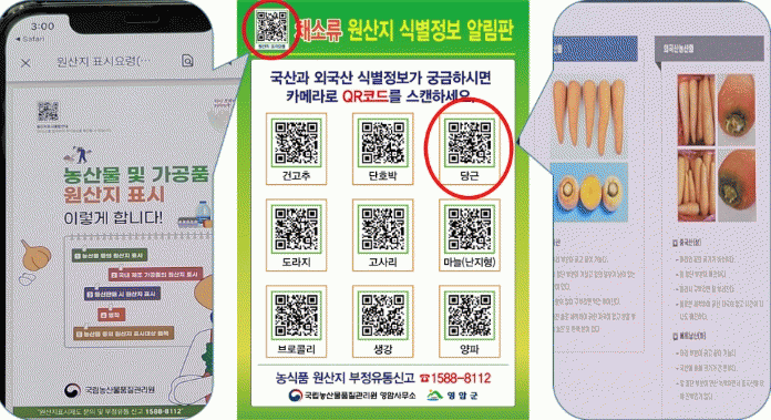 영암군과 농산물품질관리원은 이런 불편을 해소하기 위해 QR코드로 검색할 수 있는 원산지 표시판과 원산지 식별정보 알림판을 제작했다.
