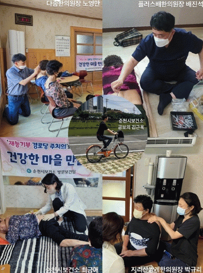 지난 2014년부터 시작한 이 사업은 지역 내 경로당 어르신들의 건강지킴이 역할을 톡톡히 하고 있으며, 순수 재능기부로 나눔을 실천 중인 순천시 한의사협회 한의사 3명과 순천시보건소 공무원, 한방 공중보건의사가 참여하고 있다.