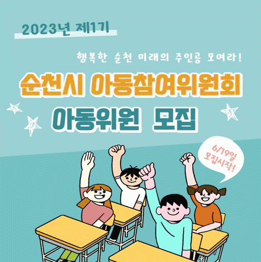 모집 대상은 순천시에 주민등록이 되어 있거나 관내 학교에 다니고 있는 14세 미만의 아동이다. 신청은 다음 달 7일까지 신청서와 개인정보 동의서를 보육아동과 아동친화팀에 제출하면 된다. 신청 서식은 순천시 누리집의 ‘고시공고’또는 홍보포스터 내 QR코드로 연결되는 ‘아동참여광장’에서 내려받을 수 있다.
