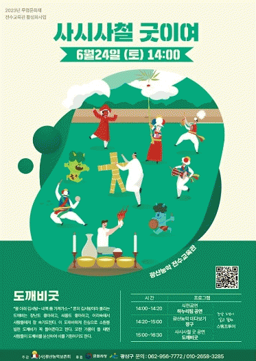 한편, 6월 ‘사시사철 굿이여’의 세부 프로그램으로 ‘사시사철 굿 공연(도깨비굿)’, ‘광산농악 데다보기(장구)’, ‘농악 그것이 알고 싶다(스탬프 투어)’를 운영하며 일반 시민 누구나 참여할 수 있다.