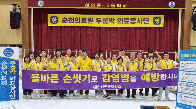 섬 지역 특성상 의료접근성이 낮은 고령의 어르신들을 위해 순천의료원 의료봉사단 의사, 간호사 10여 명과 신안군 보건소 직원 10여 명이 함께 봉사활동에 참여하여 지역주민 400여 명을 대상으로 무료진료, 건강상담, 영양수액 등의 의료서비스를 제공했다.