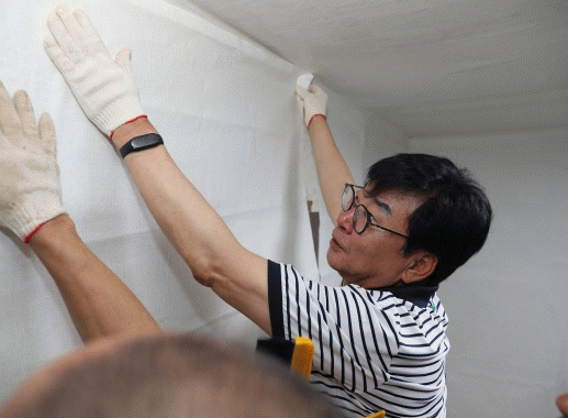 김 군수는 봉사대원들과 함께 오래된 벽지와 장판을 교체하고 집안 곳곳을 정리하며 자원봉사자와 소통의 시간을 가졌다.