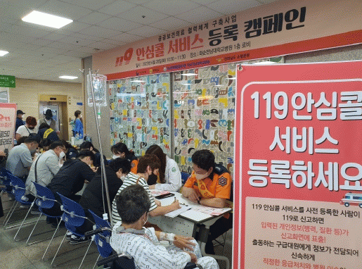 이번 캠페인에 참여한 전남소방본부, 화순소방서, 화순전남대학교병원은 119안심콜 서비스에 대한 도민의 관심을 이끌기 위해, 병원 방문 환자 및 보호자 내방객을 대상으로 119안심콜을 안내하고 가입요령이 담긴 홍보물을 배부했다.