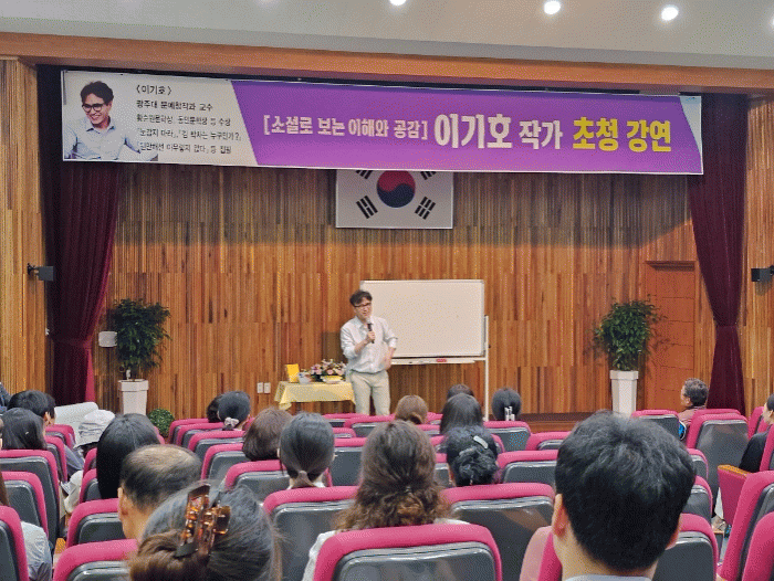 영암도서관에서 열린 이날 강좌에는 '눈감지 마라' 등을 집필한 이기호 작가가 강사로 나서 영암군민에게 소설가로 입문한 계기 등을 들려줬다.