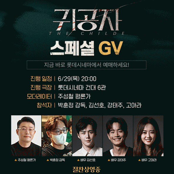 6/29(목) 오후 8시 롯데시네마 건대입구에서 주성철 영화평론가의 사회로 진행되는 '귀공자' GV 상영회는 파격 변신에 도전한 김선호, 괴물 신예의 등장을 알린 강태주, 오랜만에 스크린에 복귀한 고아라, 한국영화계에서 자신만의 독보적인 스타일을 구축해온 박훈정 감독이 참석해 영화에 관한 다양하고 깊이 있는 대화를 나눌 전망이다.