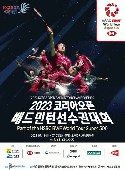 23일 시에 따르면 ‘2023 코리아오픈 배드민턴 선수권대회’는 세계배드민턴연맹이 공식 인증한 국제대회로 오는 7월 18일부터 23일까지 6일간 진남체육관에서 열린다.