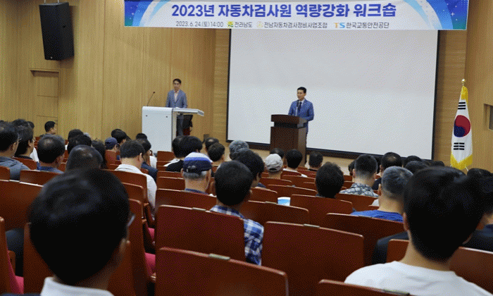 ‘철저한 자동차 검사, 교통사고 예방’을 주제로 개최한 이번 워크숍에는 한국교통안전공단, 전남자동차검사정비사업조합, 도내 민간지정정비사업자 검사원 등 300여 명이 참석했다.