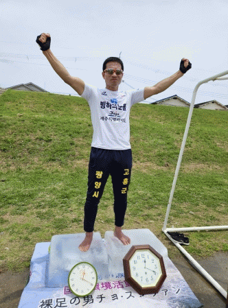 이날 도전에 성공한 조승환 씨는 “빙하를 뜻하는 ‘얼음’ 위에서 지구를 표현하는 ‘맨발’로 오래 서 있는 퍼포먼스를 통해 전 세계에 기후 위기의 심각성과 경각심을 일깨우기 위해 도전을 이어가고 있다”고 밝혔다.