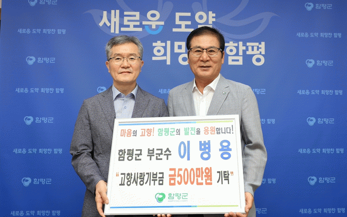 이상익 함평군수는 “이병용 부군수의 노고에 깊이 감사드리며, 함평 발전을 위해 기부금을 기탁해 준 뜻을 잊지 않고 지역 발전을 위해 소중하게 사용하겠다”고 전했다.