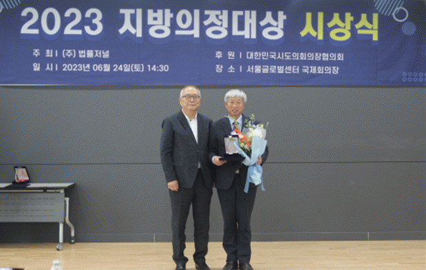 이번 2023 지방의정대상은 대한민국의 공직ㆍ법조ㆍ전문직 입직에 선도적 역할을 하는 대표 언론인 법률저널이 창간 25주년을 맞아 개최했으며 김순은(前 대통령소속 자치분권위원장) 심사위원장을 비롯한 전문가들의 엄정한 심사 끝에 입법활동 부문 대상 수상자를 결정했다.
