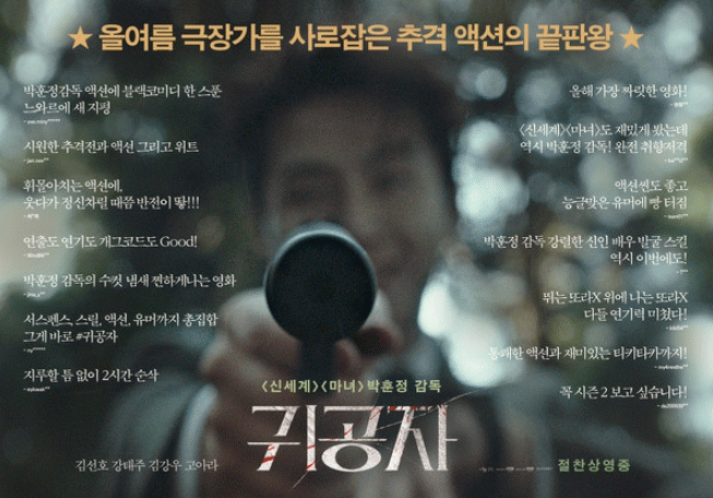 영화를 본 관객들은 “올해 가장 짜릿한 영화”(현똥**), “지루할 틈 없이 2시간 순삭”(eykwak**)이라는 극찬과 더불어 “박훈정 감독 액션에 블랙코미디 한 스푼 느와르에 새 지평”(yoo.miny*****), “박훈정 감독의 수컷 냄새 찐하게나는 영화”(jina_y**), “'신세계''마녀'도 재밌게 봤는데 역시 박훈정 감독! 완전 취향저격”(ha**i2**) 등 한국영화계에서 자신만의 장르를 개척해온 박훈정 감독의 신작에 대한 만족감을 드러내고 있다.
