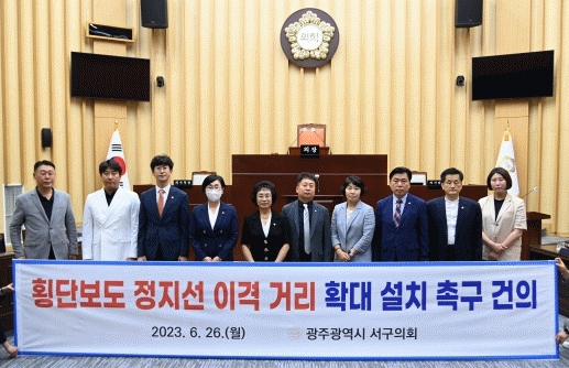 서구의원 일동은 광주경찰청과 서부경찰서 그리고 서구청에 횡단보도 정지선 이격 거리 확대 설치 적극 검토, 상호 간 적극 행정으로 시민의 교통 안전 증진 실현 등을 촉구했다.
