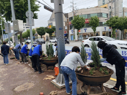 이날 통장협의회, 주민자치위원회, 새마을지도자협의회, 새마을부녀회, 바르게살기협의회 회원 60여 명은 문그로우 나무 70주와 송엽국 920본을 마이카 화분 57개에 심었다.