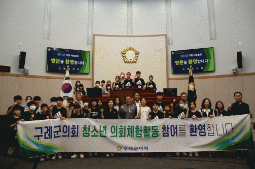 유시문 의장은“학생들이 체험활동을 통해 의회 의사진행 과정 전반에 대한 이해와 조례 등 법규의 중요성을 인식하고 대화와 타협, 소수의견 존중 등 올바른 민주적 가치관 정립에 도움이 되길 바란다.”며“구례지역 청소년들이 성숙한 시민으로 성장할 수 있도록 최선의 노력을 다하겠다.”고 밝혔다.