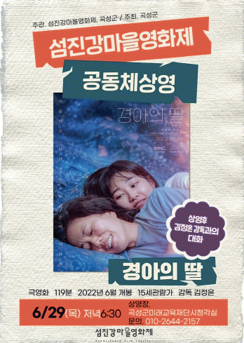 곡성군 관계자는 “이번 상영회는 군민을 비롯한 관광객, 인근지역 주민들 누구나 사전 신청 없이 무료로 관람이 가능하다. 영화감독인 김정은 감독의 강연 시간도 마련되어 있어 사회문제에 대한 고민과 의견을 나누고 영화에 대한 식견을 넓히는 기회가 될 것이다.”고 영화상영회 소감을 밝혔다.