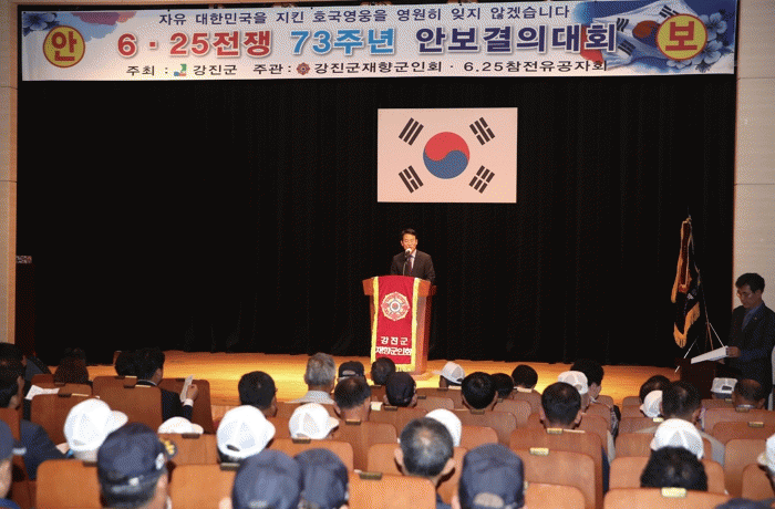 강진원 강진군수은 “오늘 대한민국이 6.25 전쟁의 참화를 극복하고 경제발전을 이룰 수 있었던 것은 이 자리에 계신 6.25 참전유공자들의 희생과 공헌이 있었기에 가능했다”며 “참전유공자 등 국가유공자가 점차 고령화 되어 가고 있는 이 시점에, 우리 사회가 나라를 위해 희생한 유공자 여러분들을 존경하고 예우할 수 있도록 최선을 다하겠다”고 말했다.